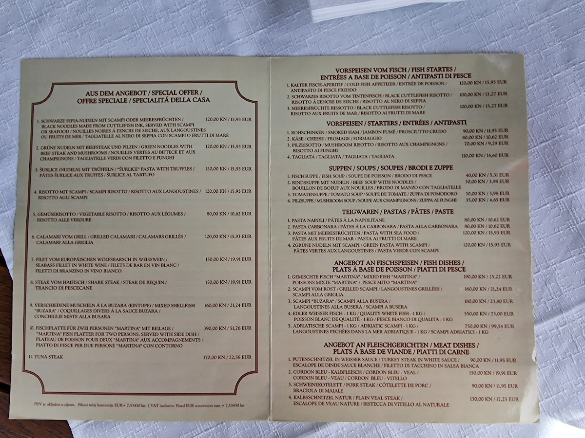 The menu at Restoran Martina showcases a delightful range of dishes, from expertly prepared mussels to a hearty meat plate. Diners have praised the tuna salad and Cordon Bleu, highlighting the quality of ingredients and the skillful preparation behind each dish. While the portion sizes are generous, some guests noted a limited selection for lunch. However, the overall quality and taste compensate for this.